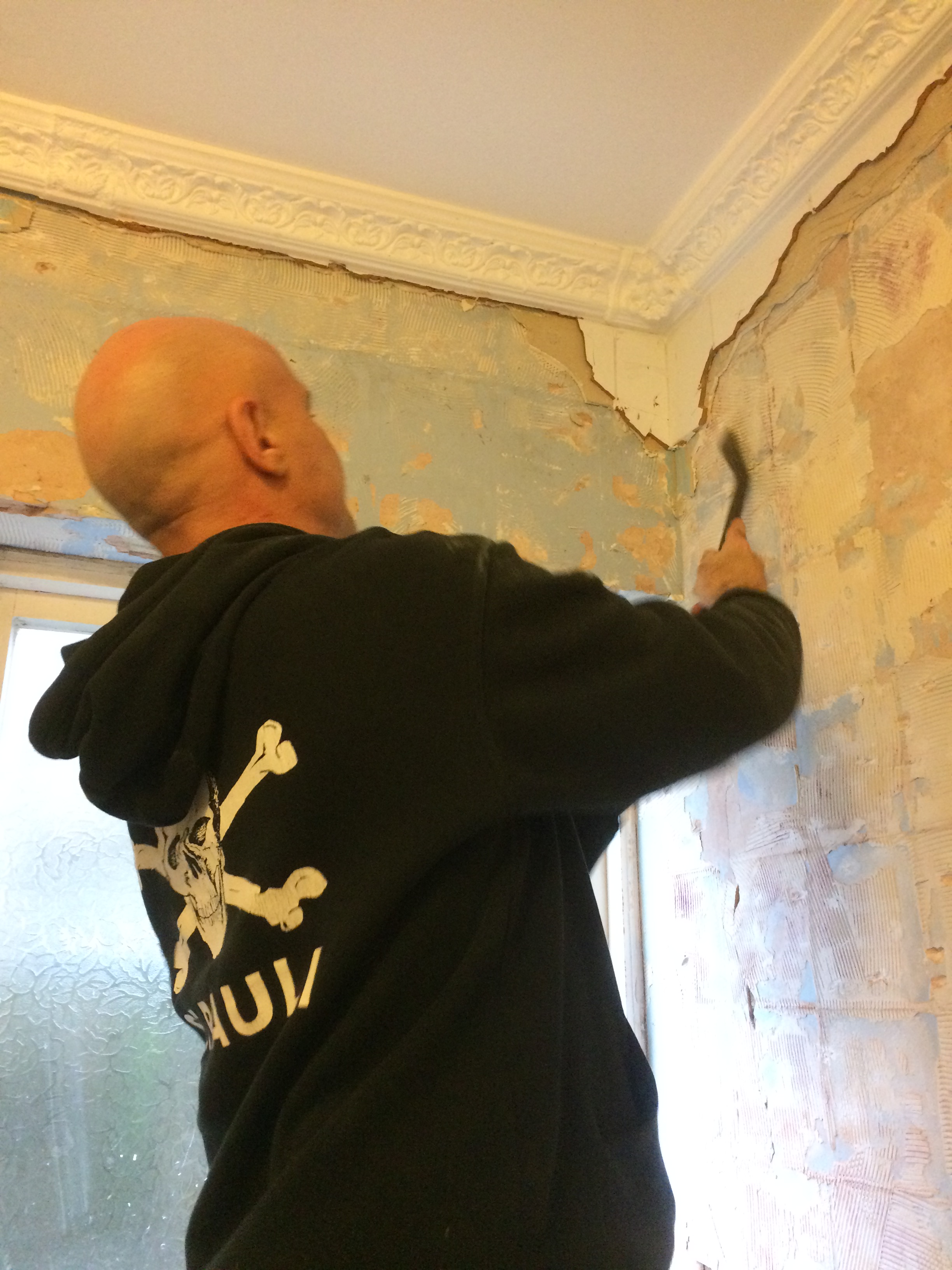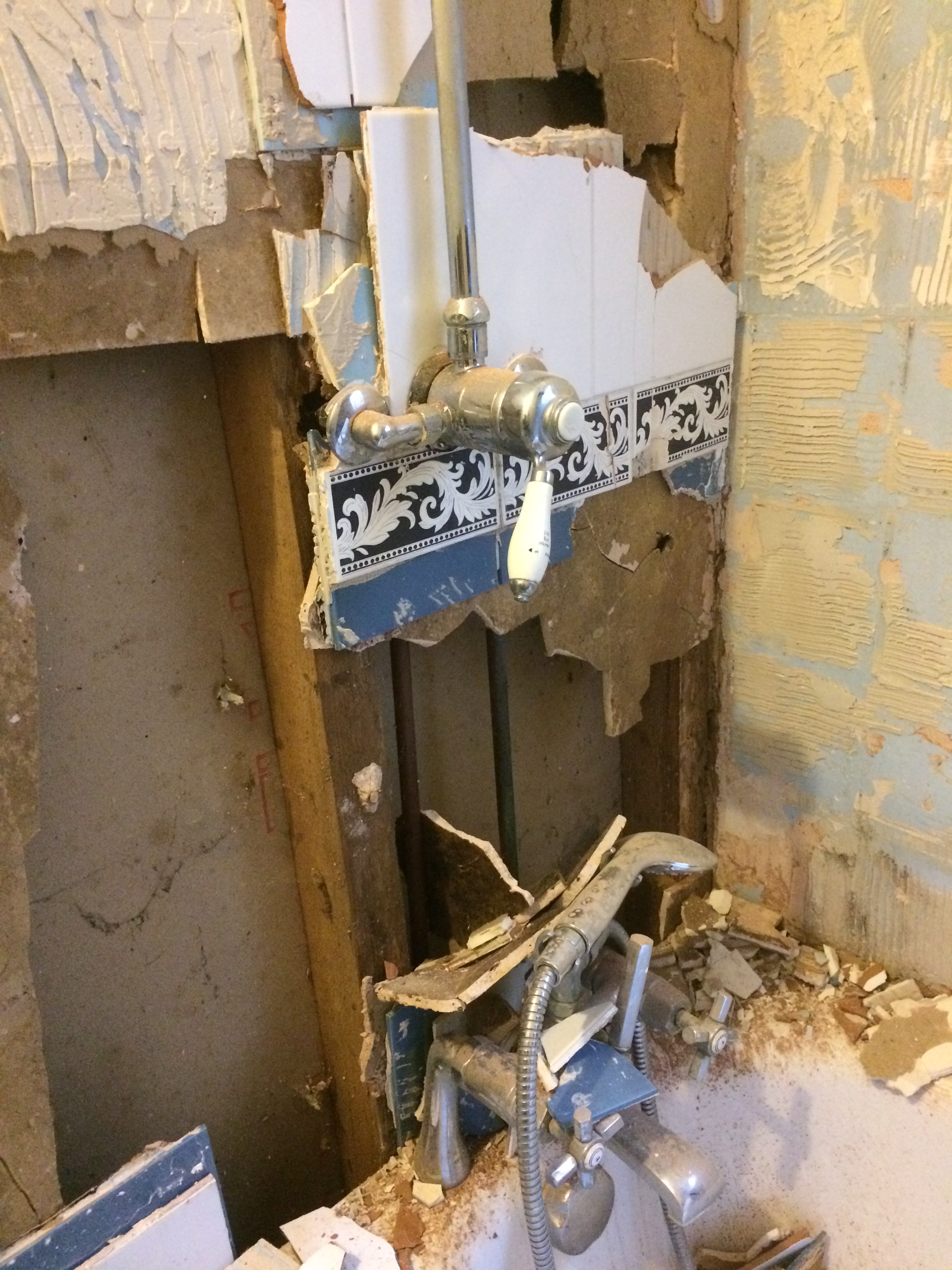 Having thought it was a simple task of stripping the old tiles and replacing with new, we discovered that the plasterboard wall behind the shower was damp and unsound, so instead of just replacing tiles we will also have to remove and replace a portion of internal wall. At one point during our Sunday work day, three hammer and chisel wielding co-op members were busily ripping out tiles which was all good messy fun!